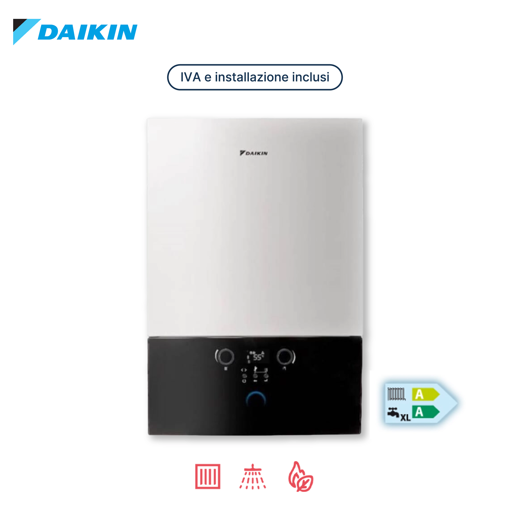 La caldaia a condensazione Daikin D2C è moderna ed elegante, interamente progettata e prodotta da Daikin nei propri stabilimenti per raggiungere i massimi livelli di efficienza ed un funzionamento silenziosissimo.