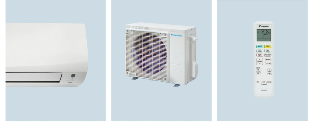Una pompa di calore aria-aria (nota anche come climatizzatore) è in genere costituita da due componenti principali: l’unità interna e quella esterna. Questi sono in genere chiamati sistemi “split”.